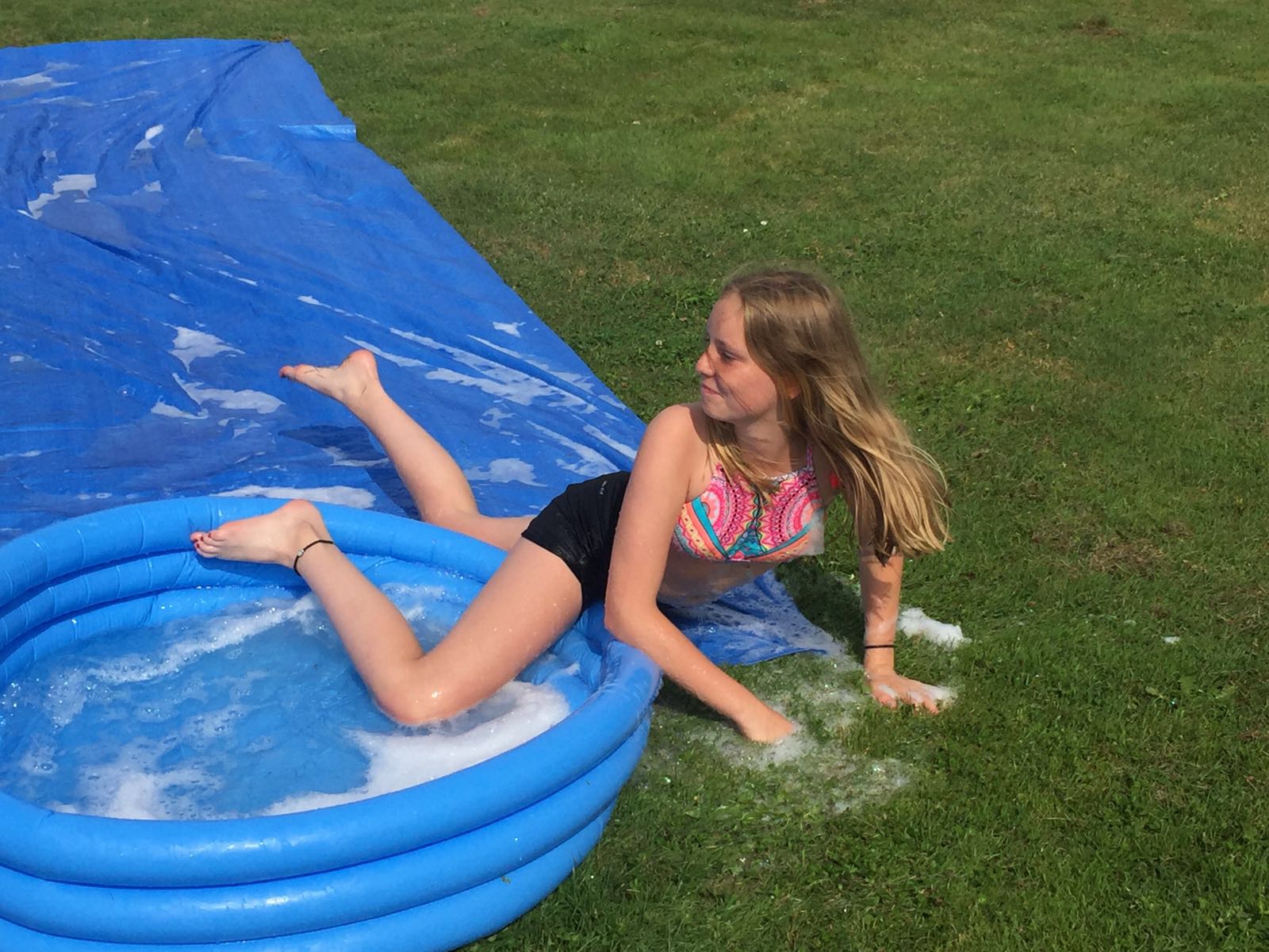 Om 16.00 uur hebben we een vrije ronde en dat is het moment dat het animatieteam in actie komt. De voorbereidingen zijn getroffen en alle kinderen worden uitgenodigd om mee te spelen met het honkbalbadjesspel. Doel is: honkbal met rennen, (uit)glijden, lol, nat worden, valen, opstaan en vooral heel veel gezelligheid. Met volle overtuiging wordt er door verschillende personen in de badjes (honken) gedoken en gelukkig komt iedereen er ongedeerd uit.